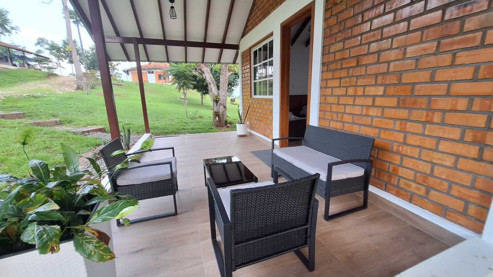 Ambiente de lujo integrado a la naturaleza: cama King Size, aire acondicionado, agua caliente, comedor y friobar, además de una terraza privada con vista panorámica.